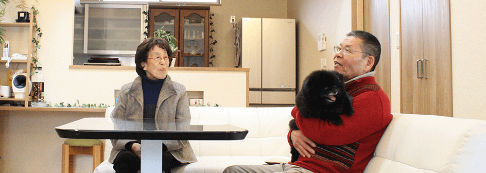 完成したわが家は、程よい大きさの平屋の家。玄関からすぐリビングに入れて、そこからすべての部屋が隣接している間取りです。家事もしやすく、何より家に居るだけで落ち着くというのがいいですね。家は人生の思い出をともに紡ぐものであり、健康を支え、生活の基盤となるものです。まず安らぐ場所でなければいけません。私たち夫婦が安らいで落ち着いているせいか、愛犬も慣れるのが早かったですね。また、こちらに引っ越してから何度か子や孫が来て、わが家を起点に岡山県を観光しています。これからもたびたび来てもらえたら、私たちも嬉しいです。